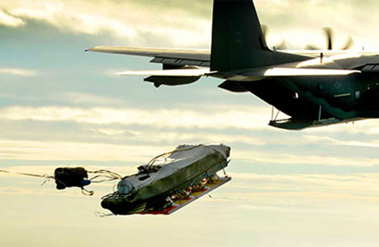 Defence required the capability to conduct the AD of specific boat types in support of contingency force requirements. Current in-service Arctic24 and Arctic 28 Rigid Inflatable Boats (RIBs) are aerially delivered through incorporation on to the Platform Universal Rigid Inflatable Boat Aerial Delivery (PURIBAD) system, which is compatible with the floor, load side guidance, and restraint systems of a Hercules C130J Mk4. This enables the RIBs to be extracted from the aircraft and retarded by parachutes to ensure the survivability of the payload.